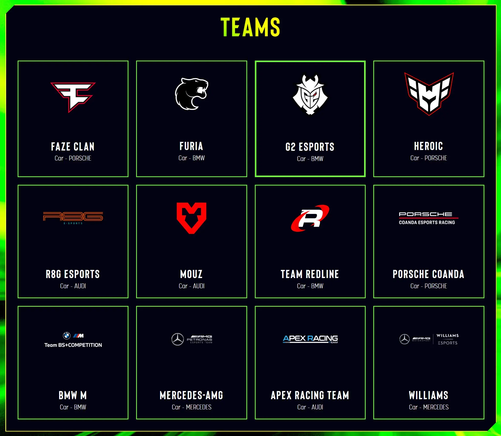 48 kierowców (czterech kierowców na zespół) rywalizowało ze sobą w ośmiu rundach. Każda runda składała się łącznie z 7 wyścigów: 4 ćwierćfinały, 2 półfinały i finał, a każdy wyścig poprzedzony był również sesją kwalifikacyjną, która miała na celu ustalenie kolejności startu kierowców. Jeśli chodzi o trasy, to uczestnicy mogli ścigać się na dwóch torach: Circuit de SPA-Francorchamps i Hoceknheimring.