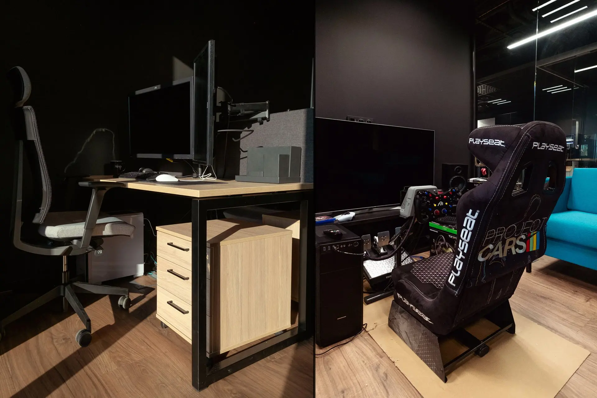 - Wygodne stanowiska pracy z ergonomicznymi krzesłami