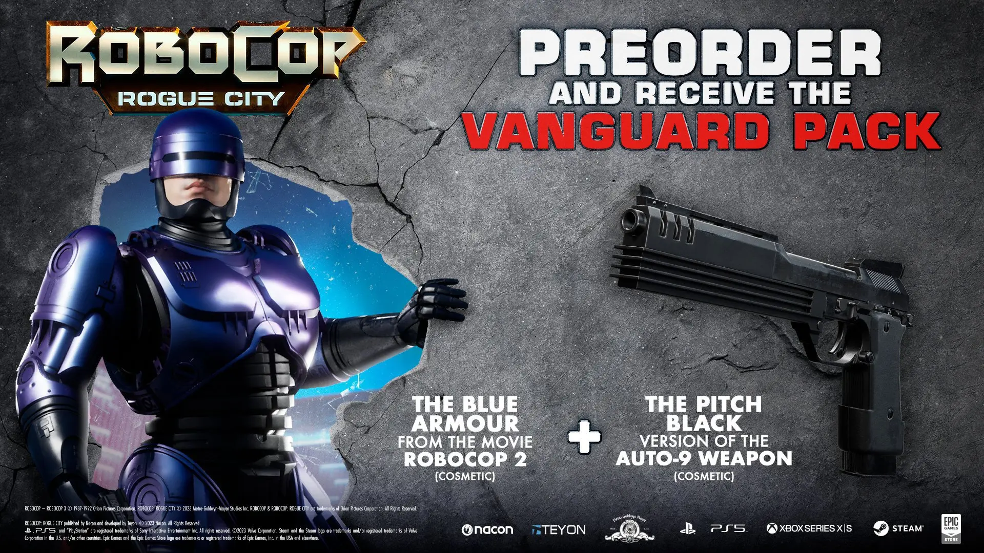 Ponadto, dla tych, którzy zdecydują się na przedpremierowe zamówienie gry, czeka fascynujący bonus w postaci pakietu DLC Vanguard. Ten dodatek wprowadza kultową niebieską zbroję znana z RoboCop 2, a także elegancką, czarną wersję broni Auto-9.